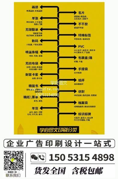 信纸、信封、便签、档案袋、文件夹、入库单、出库单、收据、无碳复写、财务表格单据、笔记本、通讯手册、贺卡、请柬、挂 历、台历、礼袋。纸类 名片制作,古书装订,票据印刷, 台历制作,写真喷绘海报。基本你能看到的广告产品,图文广告店都可以做这些业务。